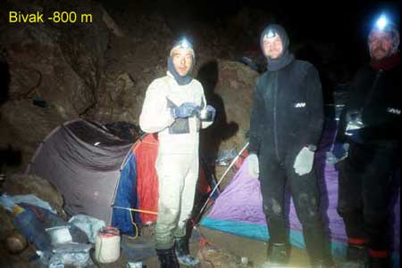 zessen vertrokken, met zijn zessen gelijktijdig op -1325 m aan de