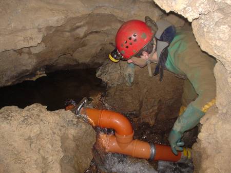 liep er nu 140 m felrode buis door de grot, en was er een lelijke