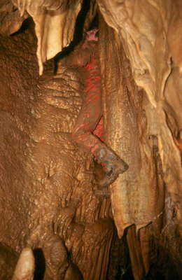 het niet moet" : een nieuwsgierige speleoloog die tussen mooie druipsteengordijnen