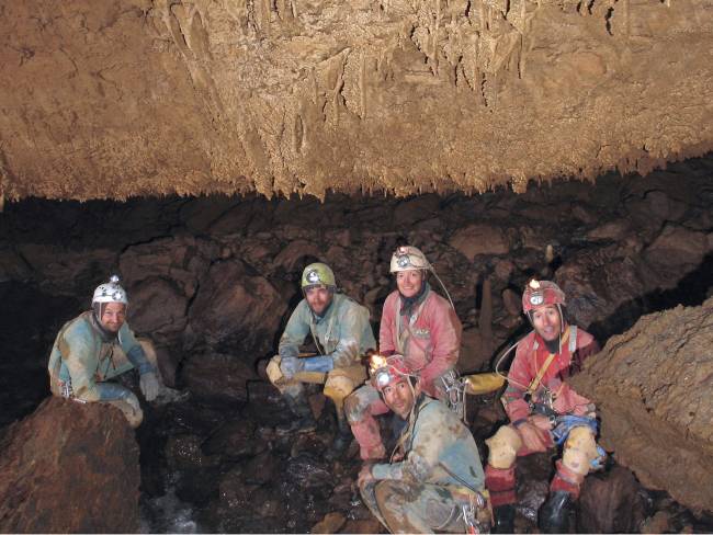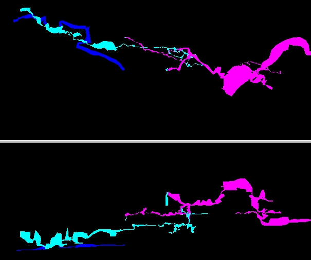 even a connection with the AN8 cave, where the river reappears, 2 km